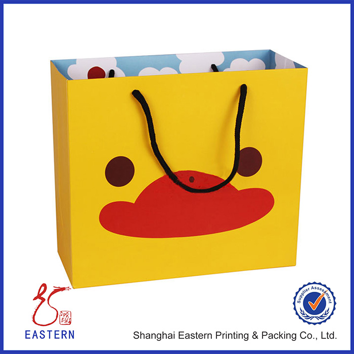產(chǎn)品簡(jiǎn)介:卡通禮品紙袋 手提紙袋,可覆膜、燙印、UV,體積小,物流便捷,并且用途廣泛,價(jià)格實(shí)惠,生產(chǎn)周期短。
